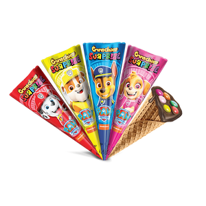 Description 25g wafer cones deliciously enrobe hazelnut praline, colored dragées and a capsule with toy! Each license has 2 or 3 different figures on the film. Discover the most addictive