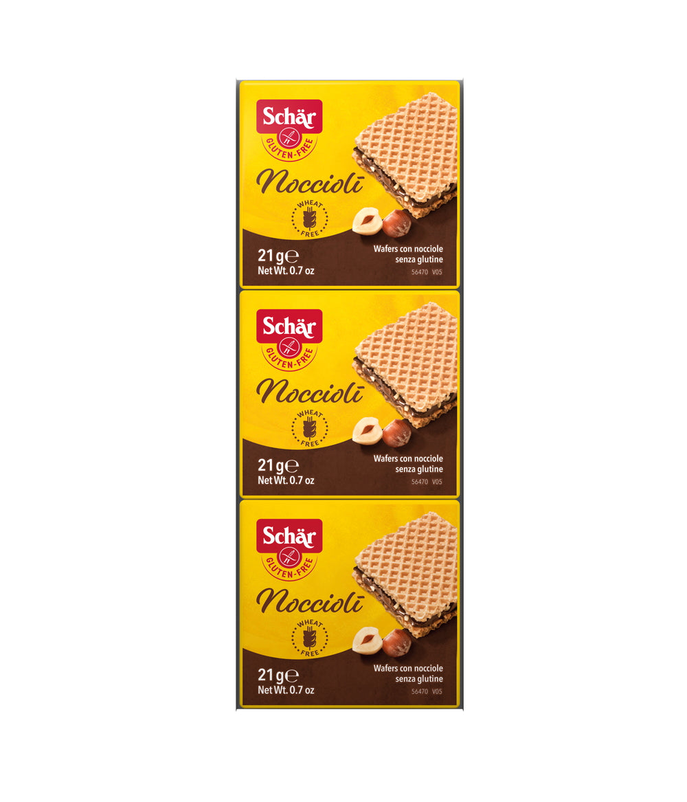 sugar , hazelnuts 17% ( hazelnuts , hazelnut paste ), maize flour , palm oil , skimmed cocoa powder , skimmed milk powder , potato starch , emulsifier: soya lecithin ; salt , flavours , raising agent: ammonium bicarbonate ; thickener: guar gum ; antioxidant: ascorbic acid . May contain traces of eggs, sesame, peanuts, almonds and other tree nuts .