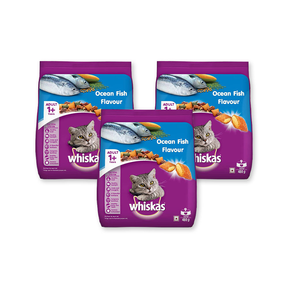 Whiskas Cat Food Ocean Fish 480g (Pack of 3)