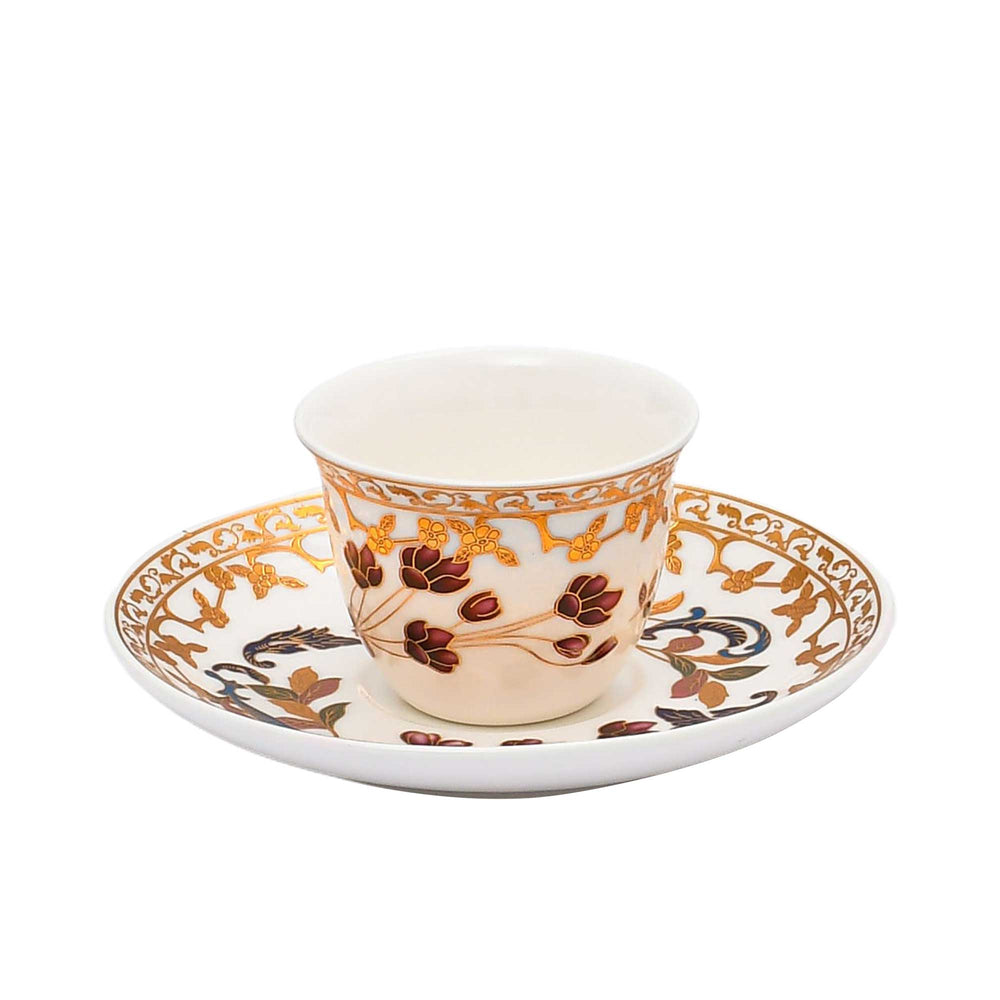 - Set Includes: 6 Tea Cups, 6 Qahwa (Arabic Coffee) Cups, 6 Saucers